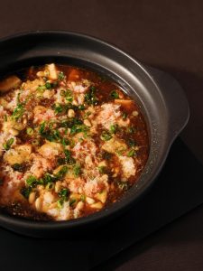 高級食材のズワイガニと雲丹を使用したスペシャルなマーボードウフ。