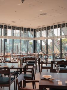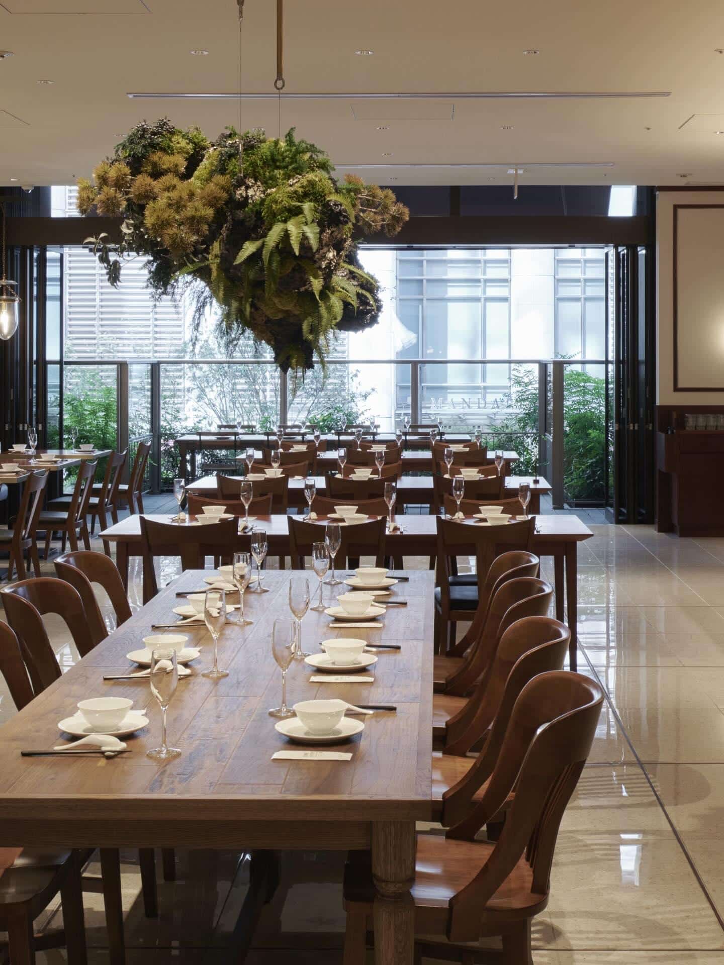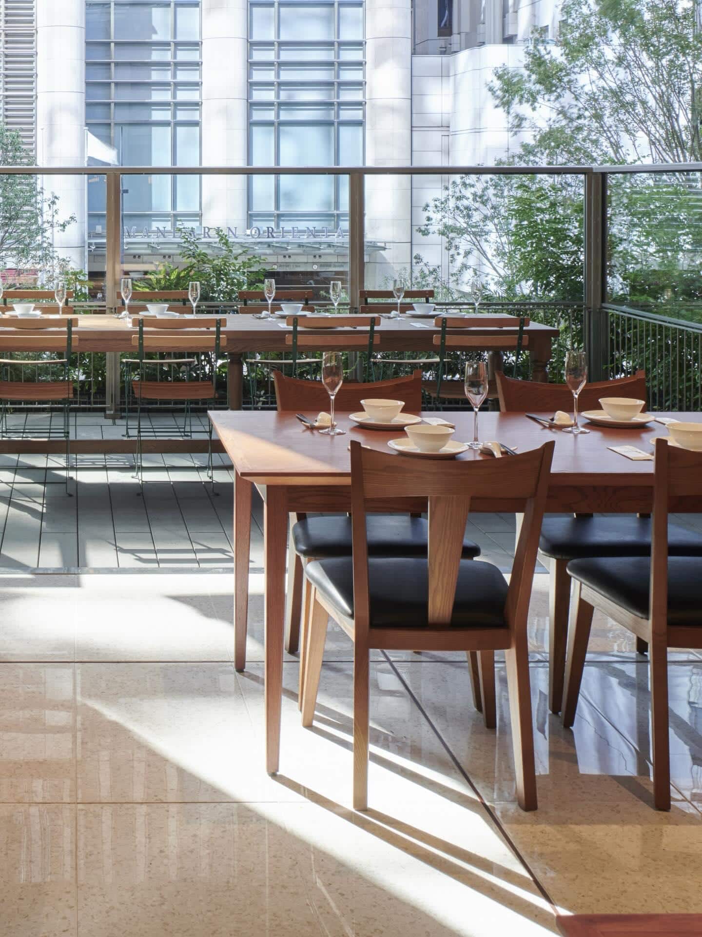 原宿クエスト店の大きく象徴的な窓に囲まれたダイニングは、優しい自然光が