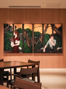 原宿クエスト店のダイニングエリアに、大きく展示されたアートは、