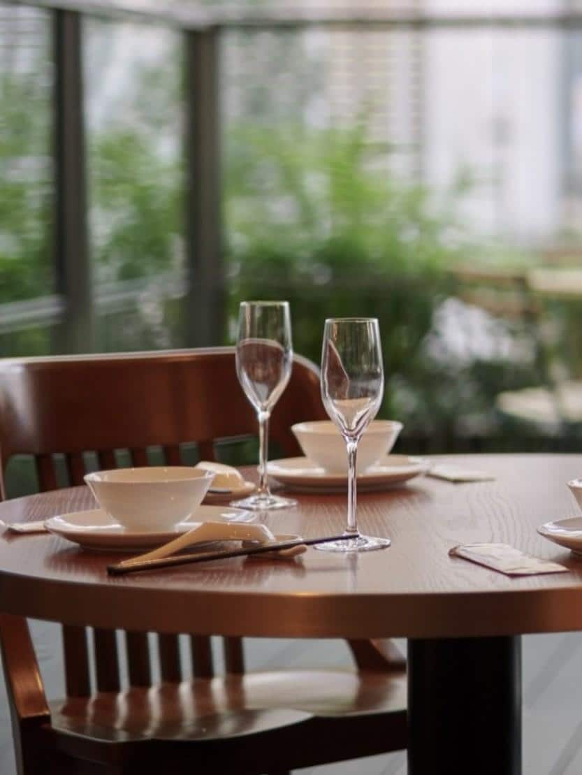 原宿クエスト店の大きく象徴的な窓に囲まれたダイニングは、優しい自然光が注ぎ込む、開放的な空間です。